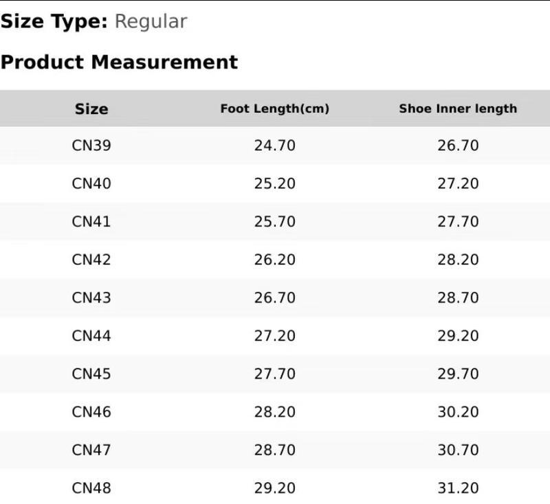 Sizes: 39, 40, 41, 42, 43, 44, 45, 46, 47, 48